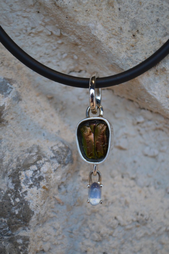 Pendentif argent 925, avec cétoine doré et pierre du lune