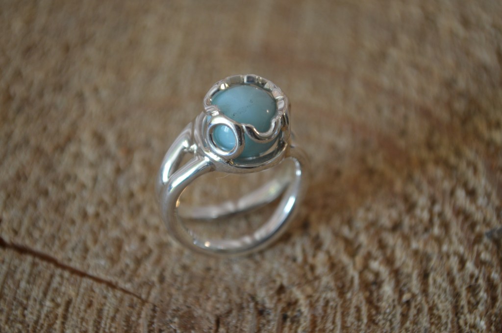 Bague AG 925 « 2 branches espacées et assemblées » avec boule interchangeable 10mm